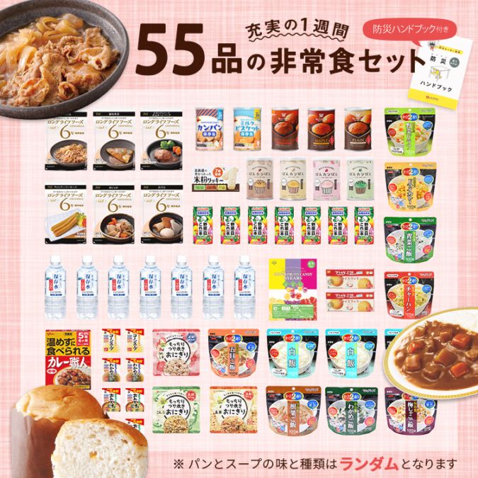 【非常食レストラン シリーズ】 充実の1週間 55品の非常食セット 防災ハンドブック付