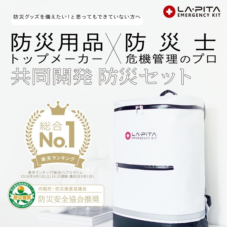 耐寒温度:-30℃取扱説明書×1 防災セットの商品リストや注意事項などを記載しています。 【関連ワード】 防災セット 非常用 リュック 非常持ち出し袋 非常持ち出し 地震対策 地震対策グッズ 震災グッズ 避難セット 避難グッズ 避難防災セット 避難リュック 避難・持出用品 白 ホワイト ブラック 黒 赤 レッド ブルー 青 緑 グリーン 災害 グッズ 災害 リュック 水害対策 防災 セット リュック 非常時用 災害支援 被災支援 災害対策 避難用品 デザイン性にこだわりオシャレな防災セットと評判 背負いココチモ抜群 テレビCM放送中 CM 防災セットはラピタ TVCM ラピタ LAPITA LA・PITA 忘れない 熊本地震 3.11 東北 東日本大震災 経験を教訓に テレビドラマにも多数登場!