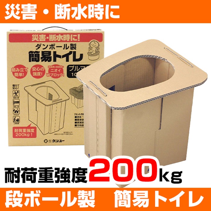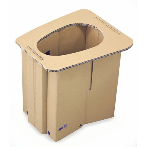 - 耐荷重200kgの組み立て式段ボール製簡易トイレ。軽量でコンパクトに収納でき、組み立てが簡単です。便座開口部は28×18cmあり使いやすい大きさに設計されています。使用後はダンボール製なので簡単に処分が可能です。