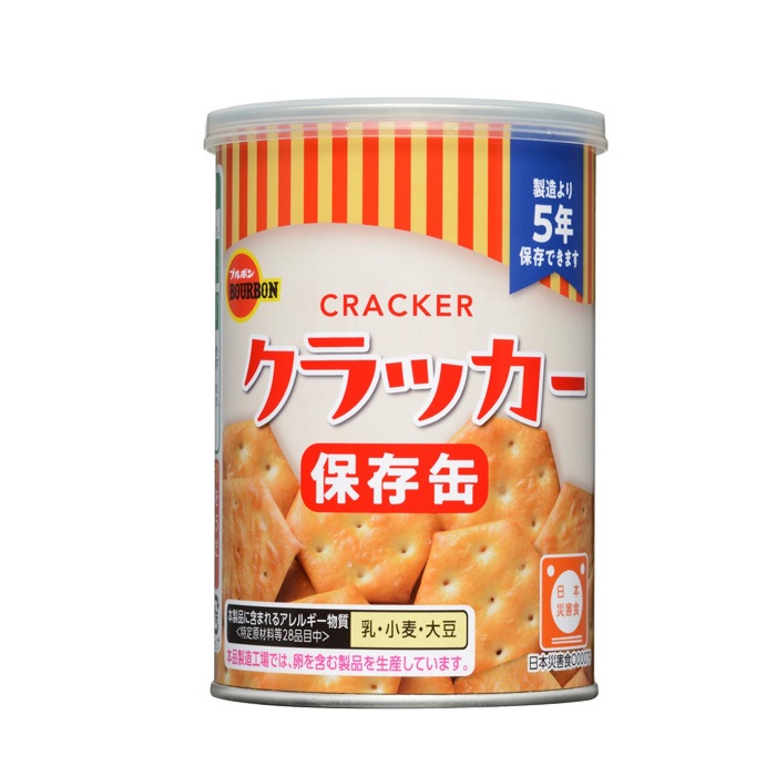 あっさりとした塩味の素朴な味わいのクラッカーです。コンパクトサイズの金属缶を使用し、フタは簡単に開封できるプルトップ式で、再封に便利なキャップ付きになっています。日頃の災害への備えに最適です。原材料名(1缶あたり) 小麦粉(国内製造)、植物油脂、ショートニング、砂糖、モルトエキス(小麦を含む)、食塩、乳糖 / 膨脹剤、乳化剤(大豆由来)、酵素、調味料(アミノ酸等)、酸化防止剤(ビタミンE)、pH調整剤 内容量(1缶あたり) 約75g アレルギー 乳・小麦・大豆 栄養成分表示(1缶あたり) エネルギー 373kcal
