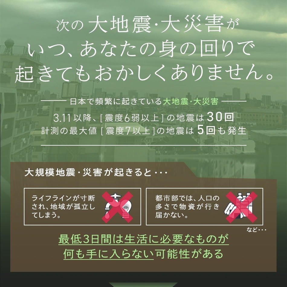 - ※災害発生後は商品のご注文が非常に殺到いたします。お届けにはお時間を頂戴いたします。ご了承ください。
