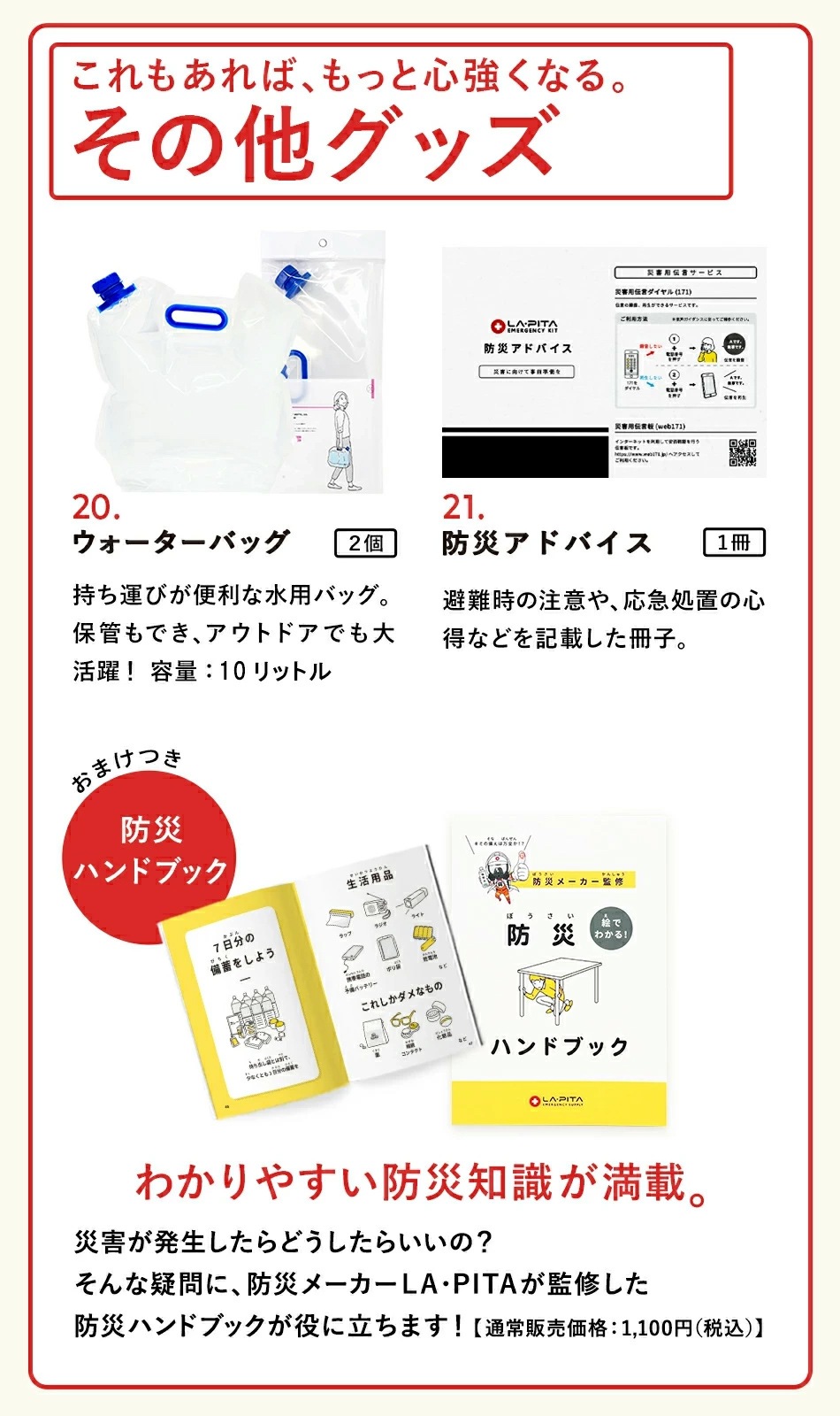 【関連ワード】防災グッズ アットレスキュー 防災セット 防災用品 防災リュック 防災バッグ おすすめ 2人分 家族 地震 災害対策 保存食 保存水 防災ラジオ ライト 非常用トイレ 避難グッズ 避難セット 地震対策グッズ 震災グッズ 災害 グッズ 災害支援 被災者支援 豪雨対策 テレビCM放送中 CM はラピタ TVCM LAPITA LA・PITA
