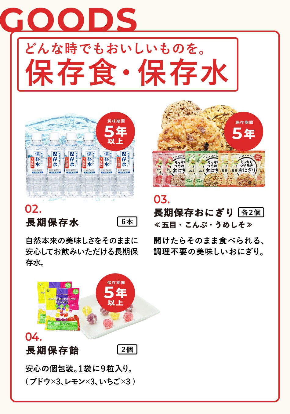 - ※災害発生後は商品のご注文が非常に殺到いたします。お届けにはお時間を頂戴いたします。ご了承ください。