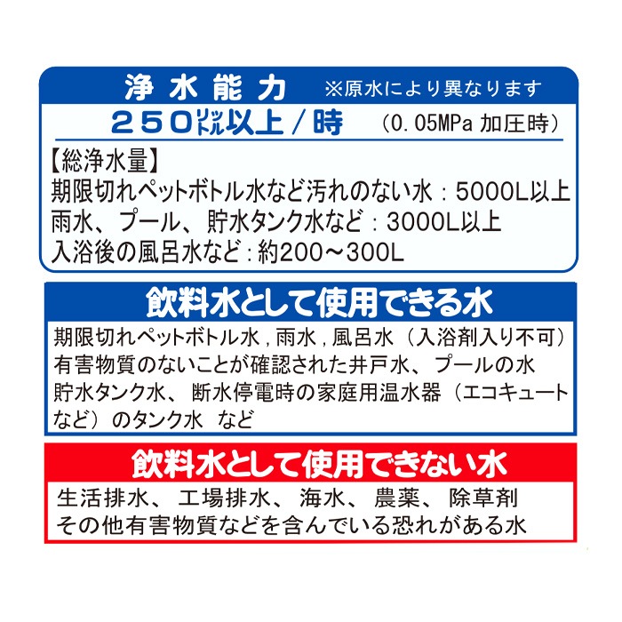 などを、安全な飲料水に浄水できる!
