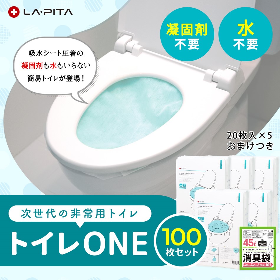 【送料無料】【45L 消臭袋付き!】 トイレと消臭袋のセット トイレONE 100枚セット (20枚×5個) 消臭袋付き! 災害対策 簡易トイレ 1枚で3回使用できる(トイレワン)【台風 停電対策】