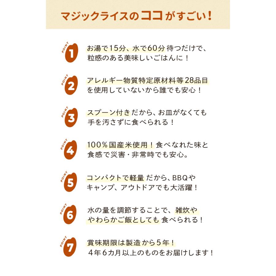 (出来上がり量:やわらかご飯/162g、おかゆ/242g)賞味期限 製造より約5年(4年6カ月までの商品をお届けします) 保存方法 直射日光、高温多湿を避けて常温保存してください
