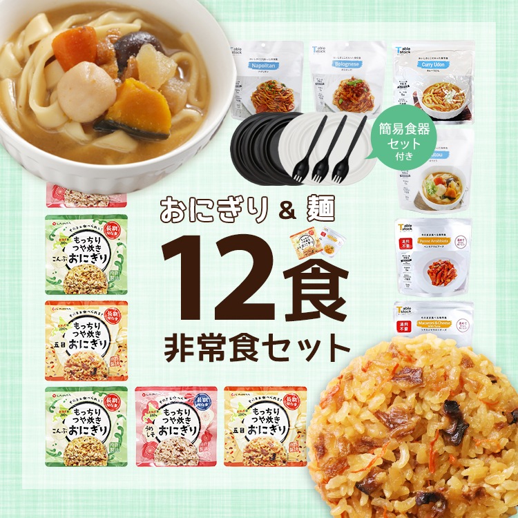 もっちりつや炊きおにぎりと麺の12食セット 【送料無料】 保存食 5年保存 非常食セット 保存食セット おにぎり 麺 【取寄せ品】
