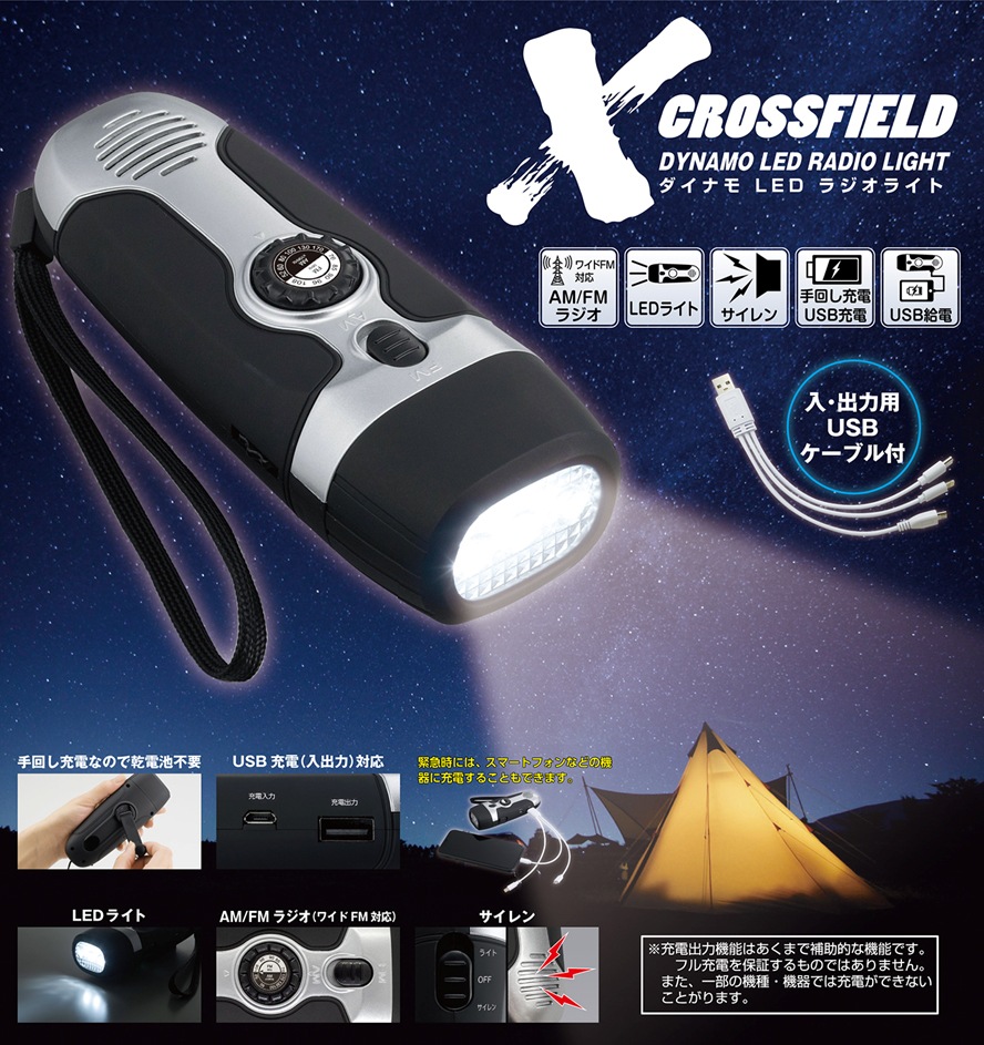 【防災月間セール 20%off】ダイナモLEDラジオライト XF-10 CROSSFIELD クロスフィールド 【台風 停電対策】