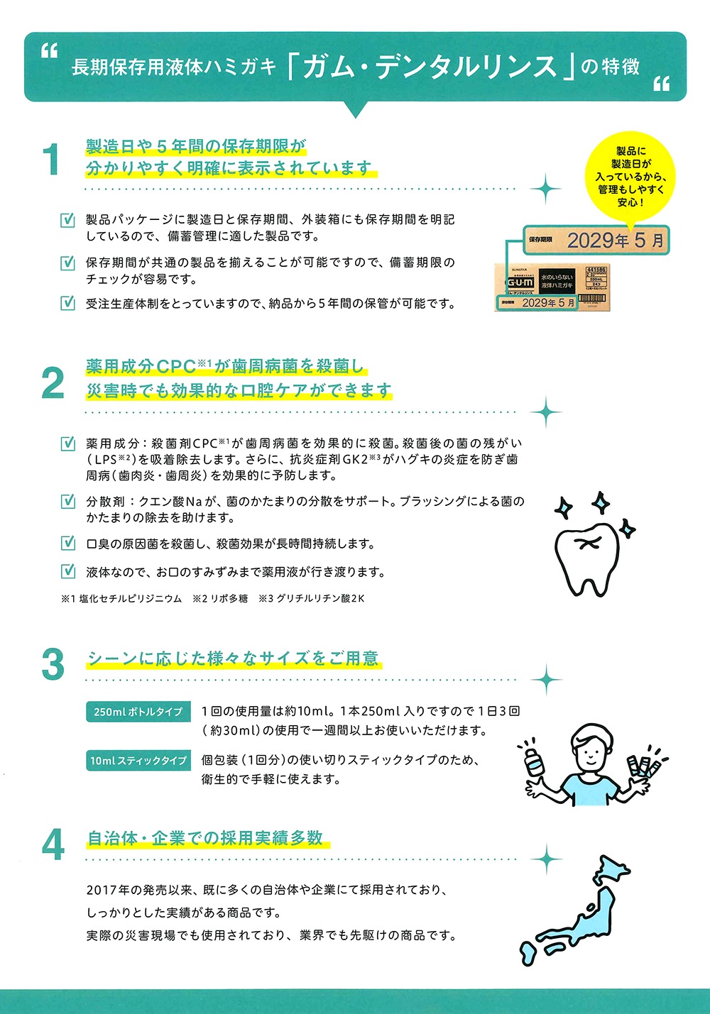 長期保存液体ハミガキ サンスター Sunstar GUM ガム・デンタルリンス 水のいらない液体ハミガキ 避難生活 避難所生活 口腔ケア 備蓄 防災対策 避難グッズ 避難生活 災害用持ち出しセット 非常用持ち出しセット