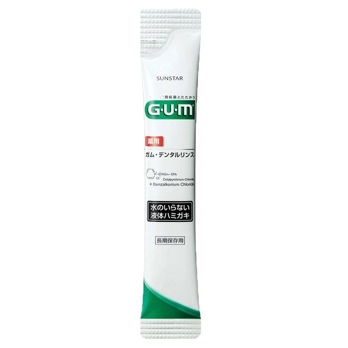 ≪長期保存用 ガム・デンタルリンス スティックタイプ≫効能 歯周病(歯肉炎・歯周病)予防、口臭防止 内容量 1本10ml(1回分)×21本 成分 溶剤:濃グリセリン、エタノール/香味剤:香料(ハーブミントタイプ)、サッカリンNa/可溶化剤:POE硬化ヒマシ油/薬用成分:塩化セチルピリジウム(殺菌剤CPC)、グリチルリチン酸2K(抗炎症剤GK2)、塩化ベンザルコニウム(殺菌剤BKC)/pH調整剤:クエン酸Na、無水クエン酸/清掃助剤:ヤシ油脂肪酸アシルアルギニンエチル・DL-PCA塩 保存期間 5年