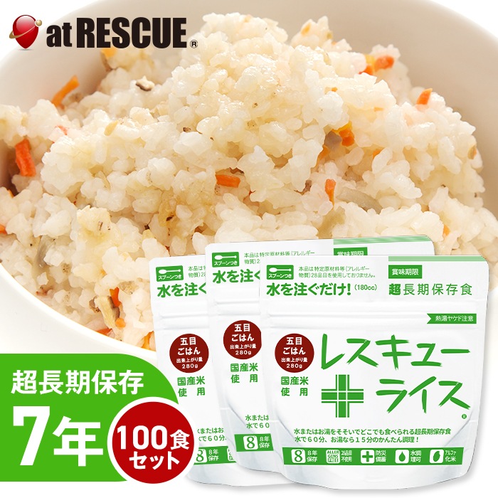 【100食セット/ケース】 7年保存 レスキューライス【五目ごはん】 アルファ米 100食セット