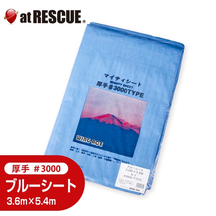 ブルーシート #3000 3.6×5.4 災害時 地震 台風 雨除け 風よけ 避難グッズ 避難生活 屋根 窓 応急措置 養生シート ボウサイ 避難所 ぼうさい 防災グッズ 防災グッツ 防災グッヅ 防災用品 避難用品 地震対策 災害対策 避難グッズ アットレスキュー 非常用